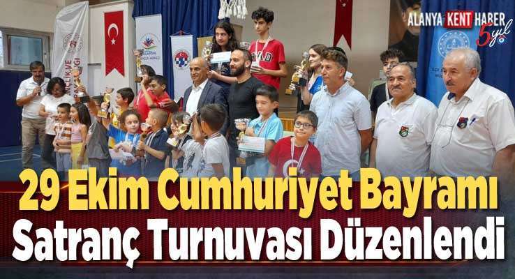 Alanya’da 29 Ekim Cumhuriyet Bayramı satranç turnuvası düzenlendi. Turnuva sonunda başarılı öğrencilere ödülleri, müsabakaya katkı sağlayan firma adına Tolga Ağca tarafından verildi.