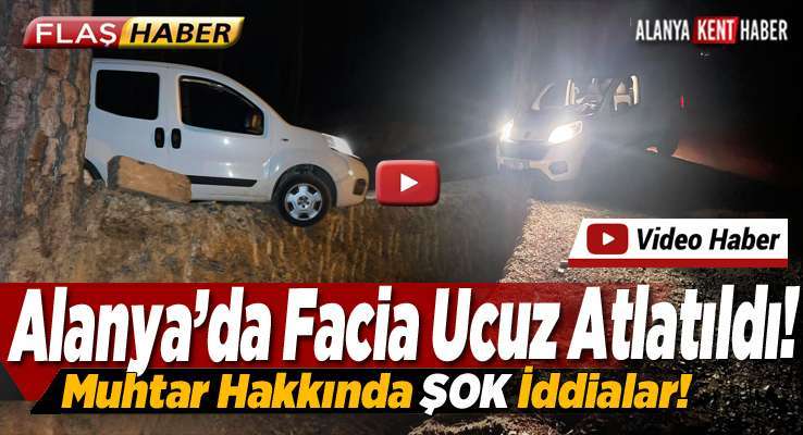 Ediilen bilgiye göre,Alanya'nın Dere mahallesi'nde Cumartesi gece meydana gelen kaza ucuz atlatıldı. Nihat Güven isimli vatandaş içinde cocuklarınında olduğu araçla evine giderken, evinin önünde yapılan harfiyat çalışmasını farkedemeyerek açılan çukura düşmekten son anda kurtuldu. Yapılan harfiyat çalışması sonrasında bölgeye herhangi bir uyarıcı levha ve işaretin konulmamasından ötürü farkedilmeyen çukura düşmekten son anda kurtulan aracın bir tekerinin havada kaldığı görüldü.