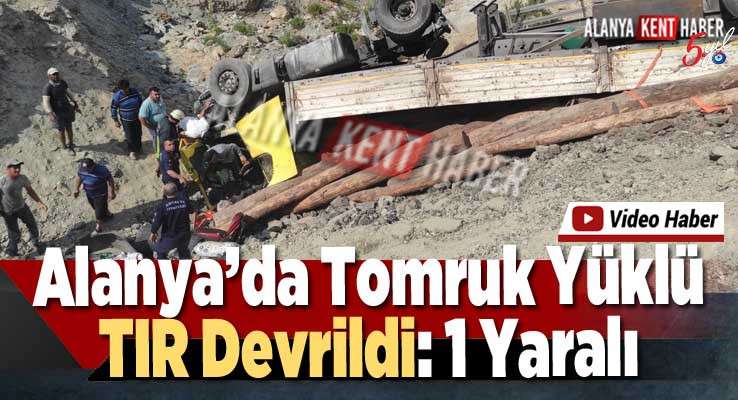 Alanya’da tomruk yüklü TIR sürücüsünün direksiyon hakimiyetini kaybetmesi sonucu eğimli arazide devrildi. Kazada 1 kişi yaralandı.
