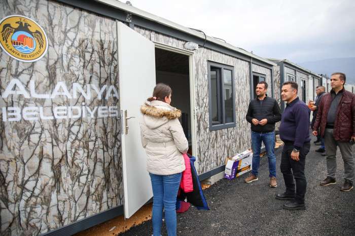 Asrın deprem felaketinin ardından Hatay’a giden Alanya Belediye Başkanı Adem Murat Yücel temaslarını sürdürüyor. Önce İskenderun’u ziyaret eden Başkan Yücel, ardından Hatay’ın Antakya ilçesine geçerek Alanyalı hayırseverlerin bağışları ile alınan konteyner evlerde yaşayan depremzedelerle bir araya geldi. Yücel, “Devletimiz ve milletimiz el ele yaralarımızı birlikte sarıyoruz, saracağız” dedi.