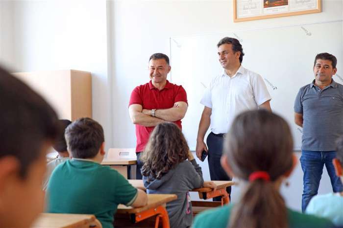 Alanya Belediye Başkanı Adem Murat Yücel, göreve geldiği günden bu yana okullar, kreşler, etütler, yurt vb. bir çok yatırımla eğitime çok büyük bir destek verirken Avsallar’da bir okulun daha ikili eğitimine son verdi. Alanya Belediyesi tarafından Halıcı Orhan İlk ve Ortaokulu yanındaki alana inşa edilen, uzun yıllar eğitime destek verecek ve bölgede ikili eğitimin son bulduğu okulda Alanya Belediye Başkanı Adem Murat Yücel ve İlçe Milli Eğitim Müdürü Yusuf Yılmaz öğrenci ve öğretmenleri ziyaret etti. Başkan Yücel ve Müdür Yılmaz’a Belediye teknik ekipleri ve Avsallar Mahalle Muhtarı İbrahim Görgülü eşlik etti.