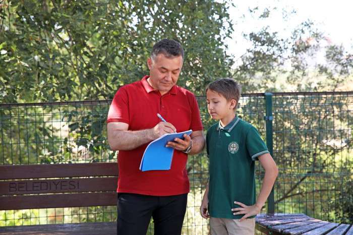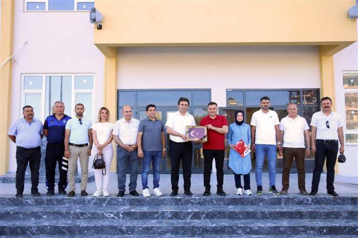 Ziyaretin ardından Alanya Belediye Başkanı Adem Murat Yücel, okula asılmak üzere İlçe Milli Eğitim Müdürü Yusuf Yılmaz’a Türk Bayrağı motifli tablo hediye etti.
