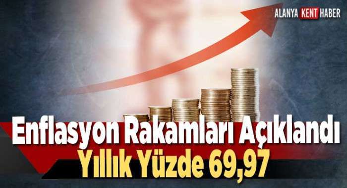 Tüketici fiyat endeksi (TÜFE) yıllık yüzde 69,97, aylık yüzde 7,25 arttı. Kira artış oranı yüzde 34,46 olarak açıklandı