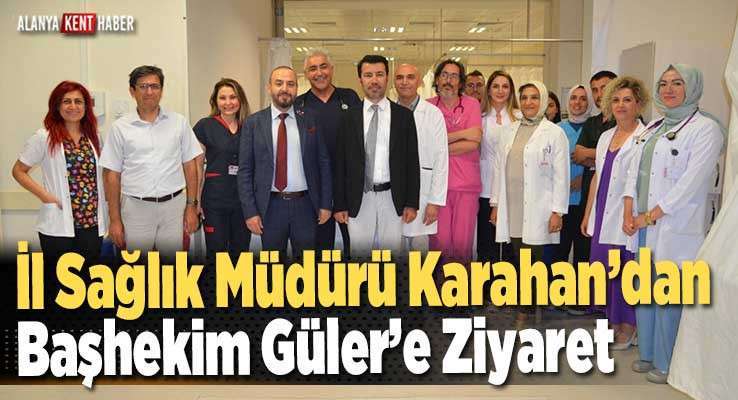 Antalya İl Sağlık Müdürü Doç. Dr. Oğuz Karahan eski mesai arkadaşlarını ve göreve yeni atanan Alanya EAH Başhekimi Doç. Dr. Yılmaz Güler’i yerinde ziyaret etti. Ziyarette hastanenin teknik ekipman ve donanım ihtiyaçları masaya yatırıldı.