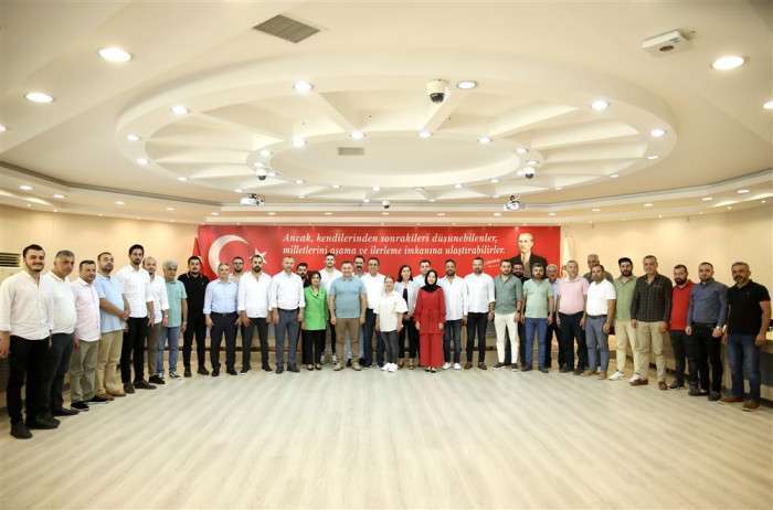 MHP Alanya İlçe Başkanı Mustafa Sünbül ve yeni yönetim kurulu üyeleri, ilçe kongresinin ardından Alanya Belediye Başkanı Adem Murat Yücel’i ziyaret etti. Alanya Belediyesi Meclis Salonu’nda gerçekleşen ziyarete MHP Alanya İlçe Başkanı Mustafa Sünbül ve yeni yönetim kurulu üyeleri katıldı.
