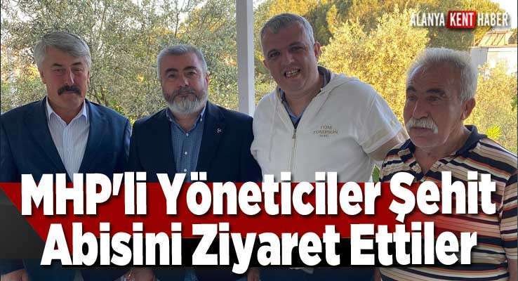 MHP Alanya İlçe Yöneticileri Sıtkı Tabakçı, Orhan Baysal ve MHP Türkler Mahalle Başkanı Mehmet Şahin, Şehit Polis Memuru Kadir Cihan Karagözlü’nün Alanya’nın Türkler Mahallesi’nde yaşayan abisi Yasin Hakan Karagözlü’yü ziyaret ettiler.