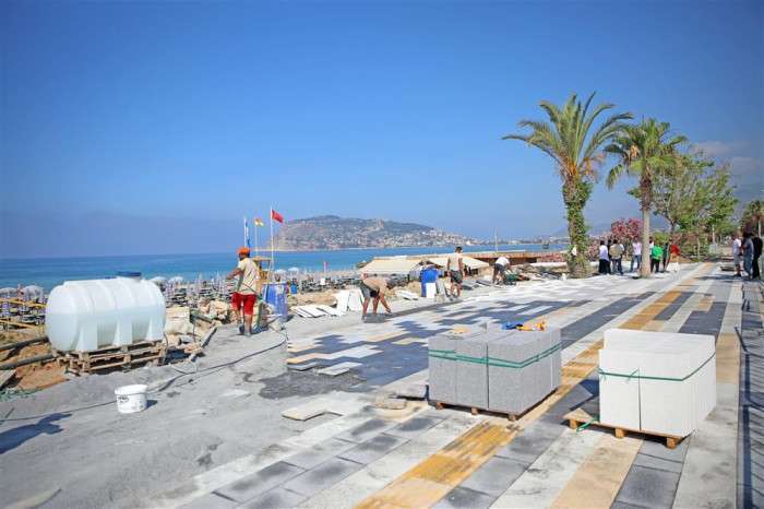 Alanya Belediyesi tarafından başlatılan sahil bandı düzenleme çalışmaları tamamlandığında 2.5 kilometrelik alanda bisiklet yolundan yürüyüş yoluna modern kent mobilyalarıyla dizayn edilmiş dinlenme alanlarından etkinlik ceplerine kadar birçok proje alanda yer alacak.