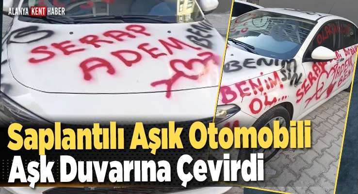 Olay dün gece Muratpaşa İlçesi'nde yaşandı. Çevredeki vatandaşların cep telefonuyla çekip sosyal medyada paylaştığı olayda beyaz bir otomobil üzerine sprey boyayla kalp işareti yapıp " Serap, Adem, seni seviyorum, beni bırakma, benimsin' gibi yazılar yazan kimliği belirsiz kişi kayıplara karıştı.