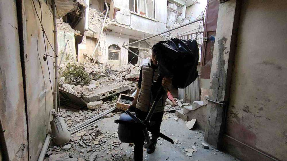 Suriye uyruklu genç, Kahramanmaraş merkezli depremlerde büyük yıkıma uğrayan tarihi evinden eşyalarını kurtarabilmek için canını tehlikeye attı.