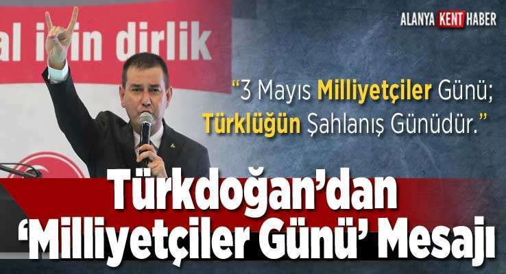 Milliyetçi Hareket Partisi (MHP) Alanya İlçe Başkanı Mustafa Türkdoğan, '3 Mayıs Milliyetçiler Günü' münasebeti ile ilgili bir mesaj yayımladı.